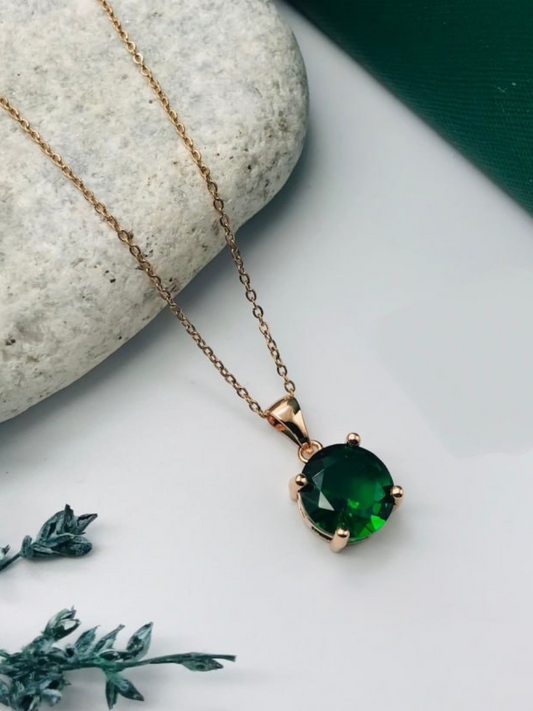 Round Green Emerald Pendant Rose Gold Chain Necklace