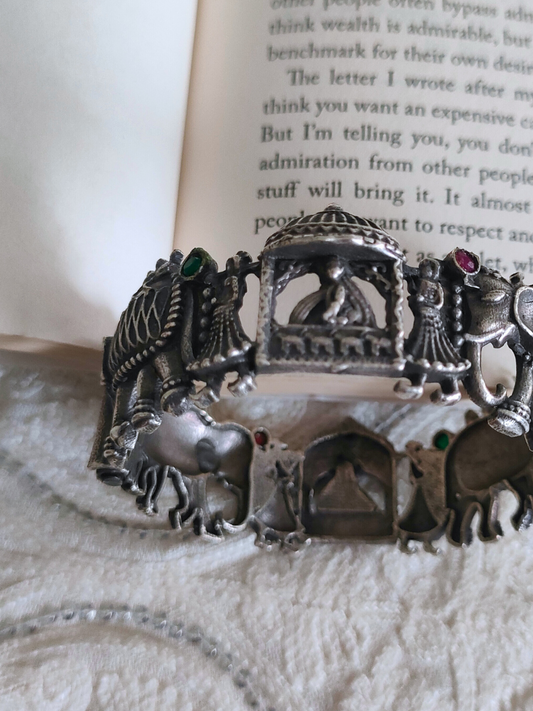 Ruby Red and Green Elephant Shaped German Silver Kada