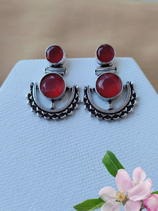Ruby Red Stones Dual Tone German Silver Oxidised Earrings