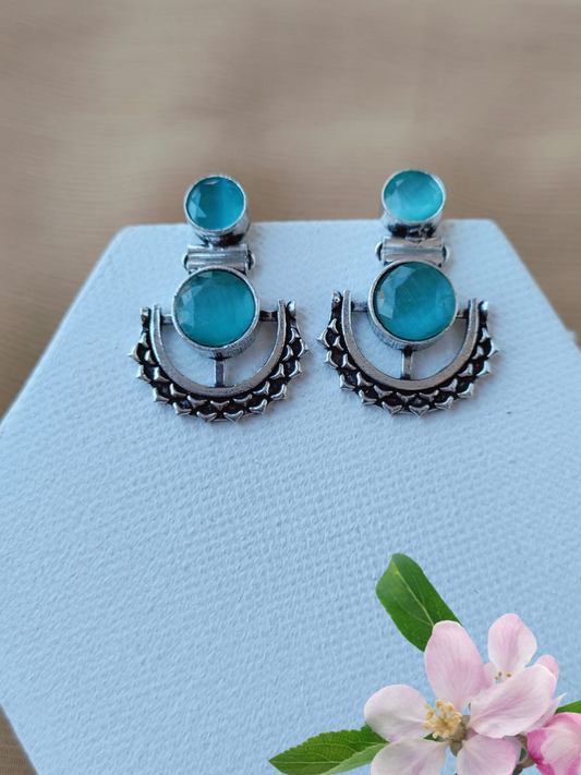 Sea Green Stone Studded Oxidised Silver Dangler Earrings