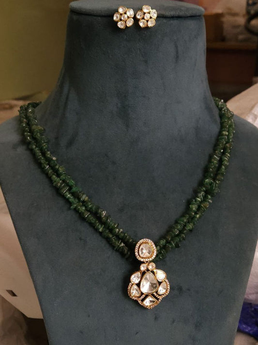 Premium Quality Green Stones Polki Kundan Hasli Necklace Set