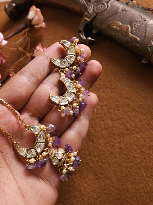 Purple Stones Polki Kundan Long Chain Necklace Set