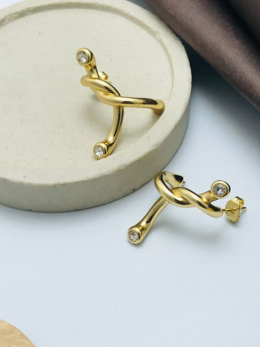 Quirky Diamond Studded Twisted Lines Golden Earrings