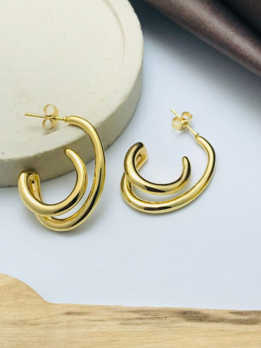 Quirky Golden Plated Double Line Half Hoop Earrings