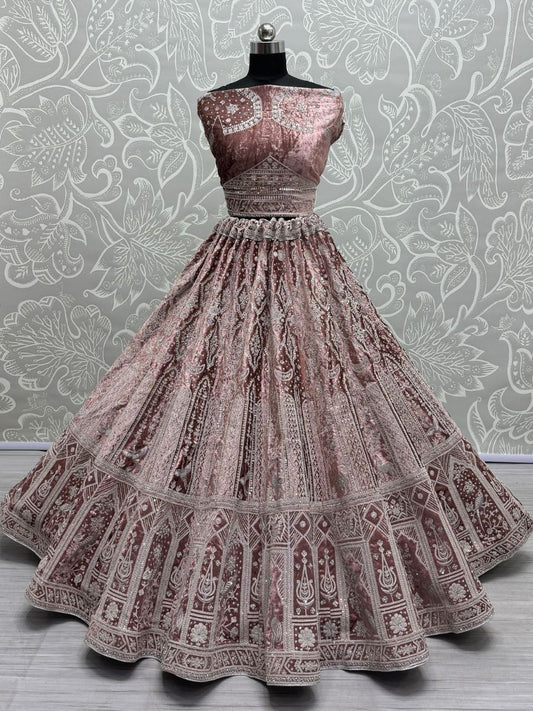 Baby Pink Thread Work Velvet Bridal Wedding Lehenga Choli