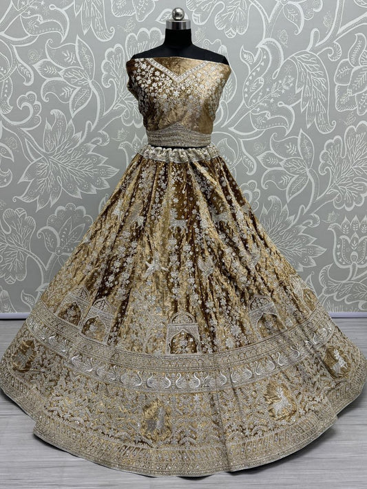 Designer Golden Sequins Velvet Bridal Lehenga Choli