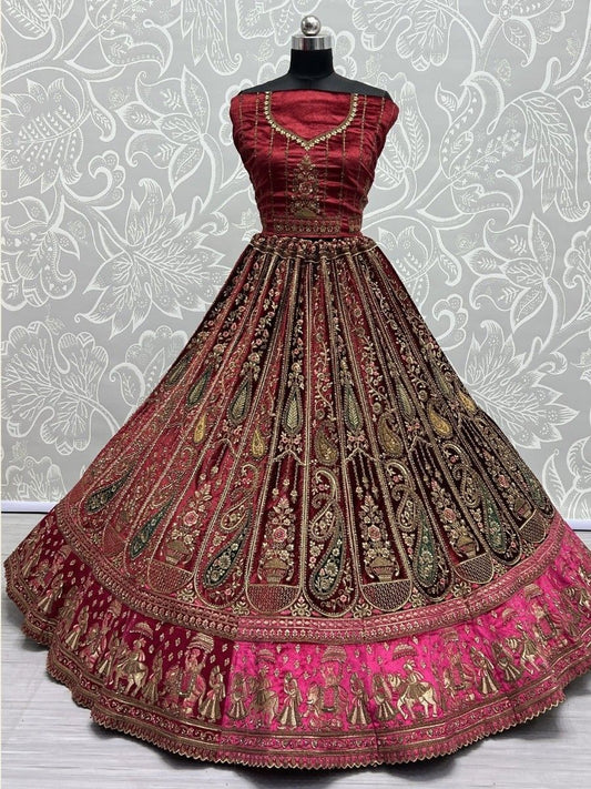 Designer Maroon Multi-Thread Work Velvet Bridal Lehenga Choli