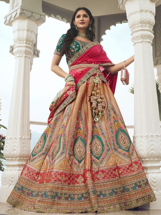 Multi Color Embroidered Banarasi Silk Wedding Lehenga Choli