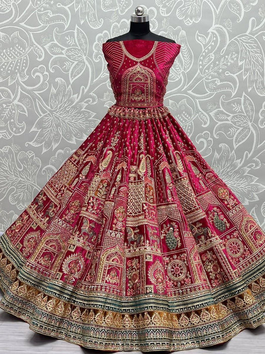 Rani Pink Zari Embroidery Velvet Bridal Wedding Lehenga Choli