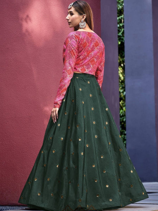 Pink Color Sequins Work Ready To Wear Silk Crop Top Lehenga
