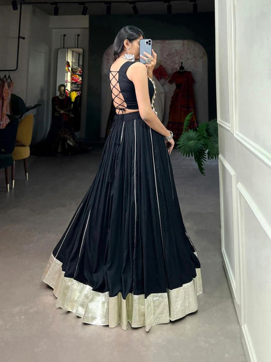 Plain Black Colour Gamthi Work Rayon Crop Top Chaniya Choli