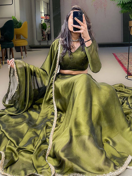 Plain Mehendi Green Silk Party Wear Lehenga Choli