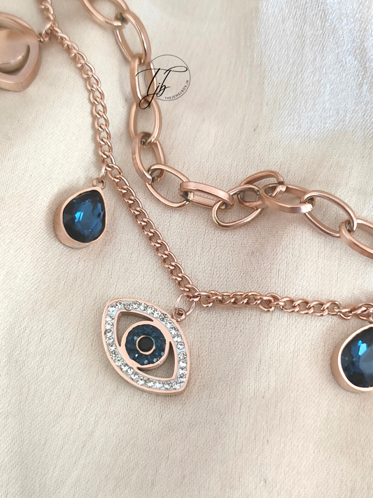 Evil Eye and Diamond Charms Minimal Rose Gold Chain Necklace