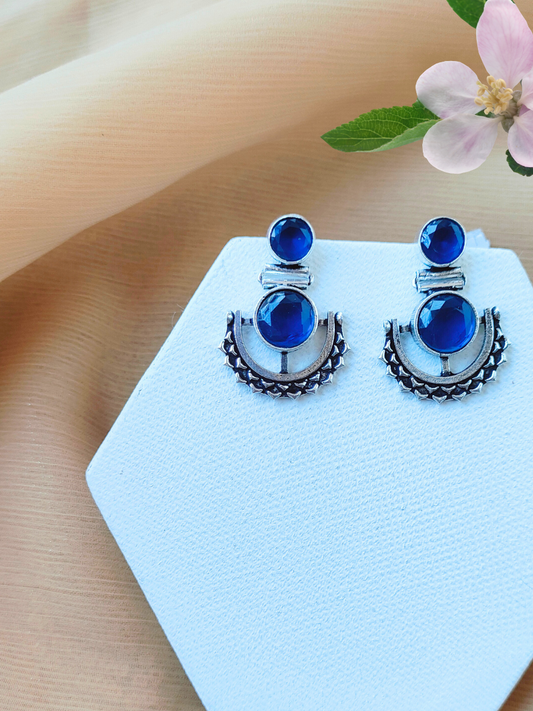 Blue Stone Studded Oxidised Silver Dangler Earrings