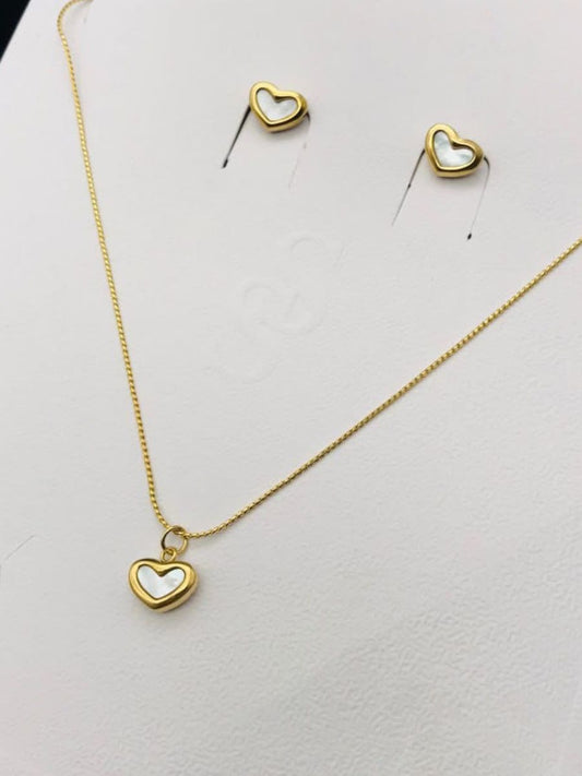 Cute Pearl Heart Pendant Golden Plated Necklace with Earrings