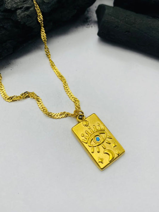 Evil Eye Rectangular Pendant Golden Chain Necklace