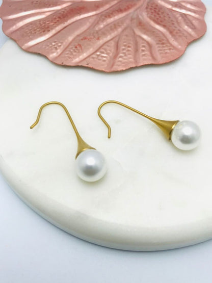 Minimal Pearl Drop Gold Plated Hoop Earrings